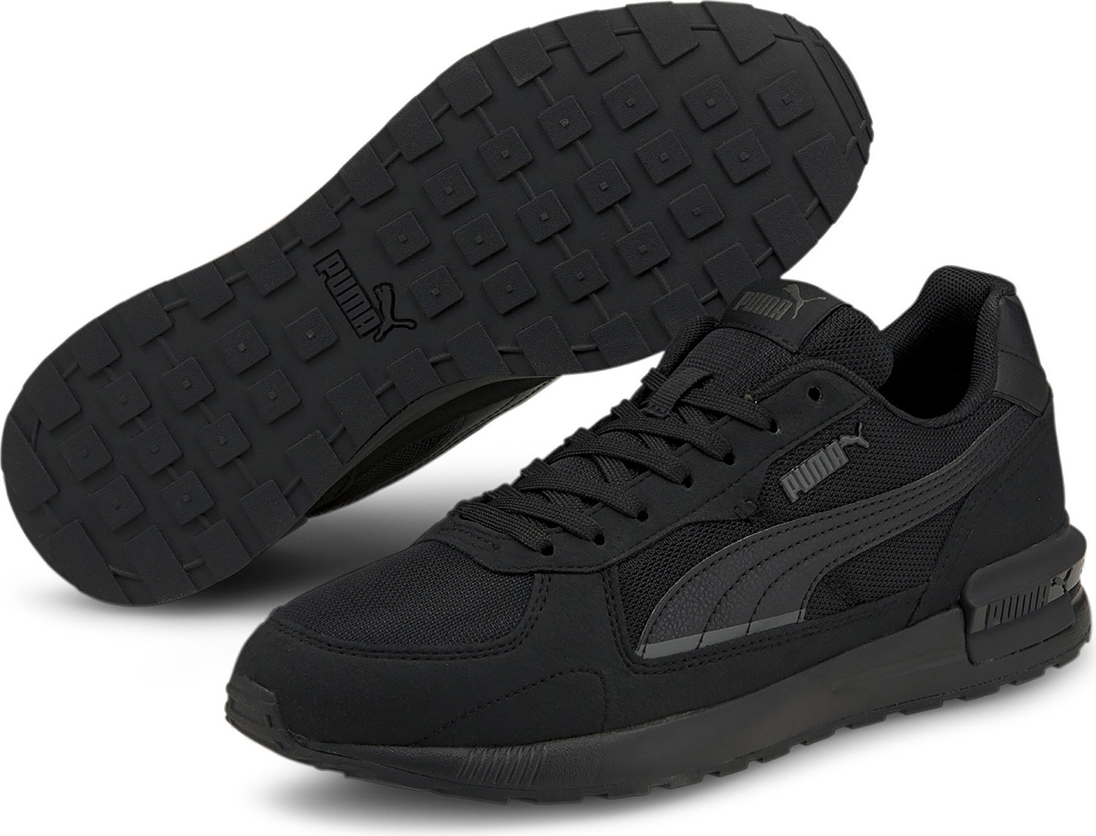 Mit den PUMA »Graviton« Sneakern in Schwarz schlägst du zwei Fliegen mit einer Klappe: Du bekommst nicht nur einen coolen Schuh, der durch seine individuelle Schnürung zum echten Hingucker wird, sondern auch ein Modell, das dank der rutschfesten Sohle jederzeit sicheren Halt bietet. Das atmungsaktive Textil-Obermaterial sorgt zudem für ein bequemes Tragegefühl. +