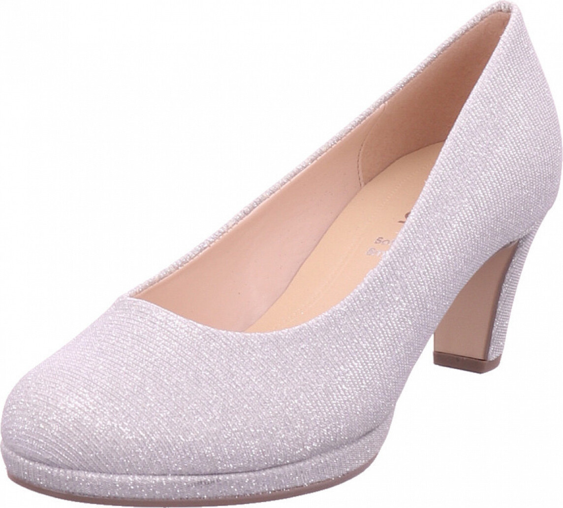 Suchen Sie nach einem stilvollen und bequemen Schuh, der jedes Outfit aufwertet? Dann ist der Gabor 01.260.60 Plateaupumps in silberfarben die perfekte Wahl für Sie! Das Innere des Schuhs ist mit einem komfortablen Textilfutter ausgestattet und die echte Ledersohle bietet Ihnen Halt und Atmungsaktivität. Die normale Weite und der 5 cm hohe Trotteurabsatz verleihen Ihren Füßen ein angenehmes Tragegefühl. +