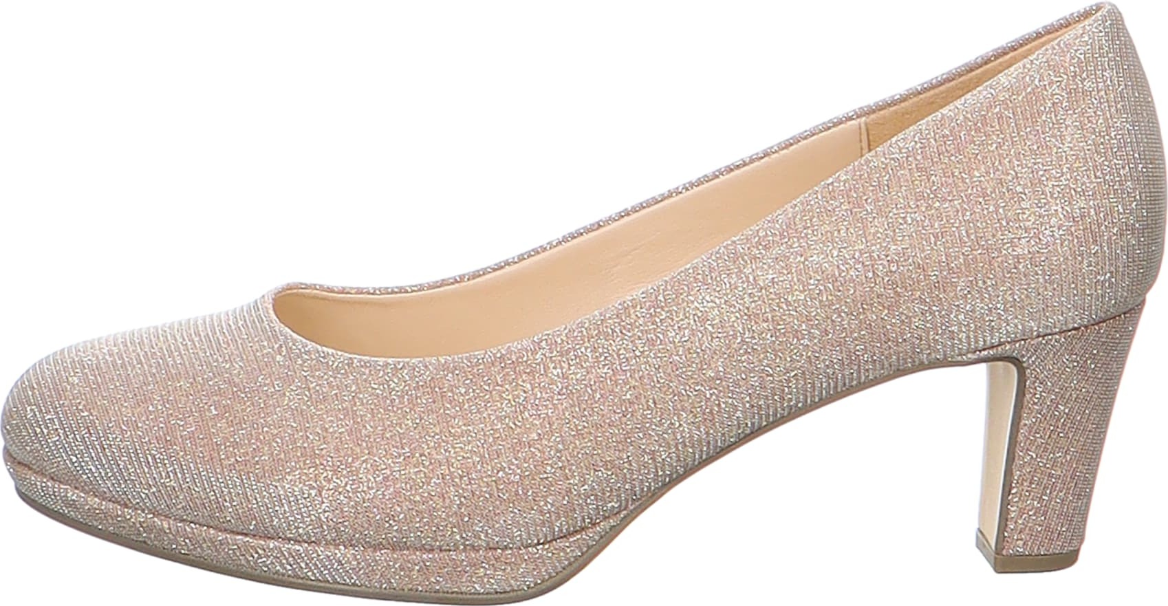 Die Gabor Plateaupumps in rosato / 64 sind der perfekte Begleiter für stilvolle Damen, die modisch und bequem durch den Tag treten möchten. Hochwertige Materialien wie Lederimitat und Textil sorgen für eine ansprechende Optik und eine hohe Strapazierfähigkeit. Die High Tech-Innensohle garantiert ein angenehmes Tragegefühl, während die Microzell-Laufsohle und das 1/2 Plateau für zusätzliche Stabilität sorgen. +