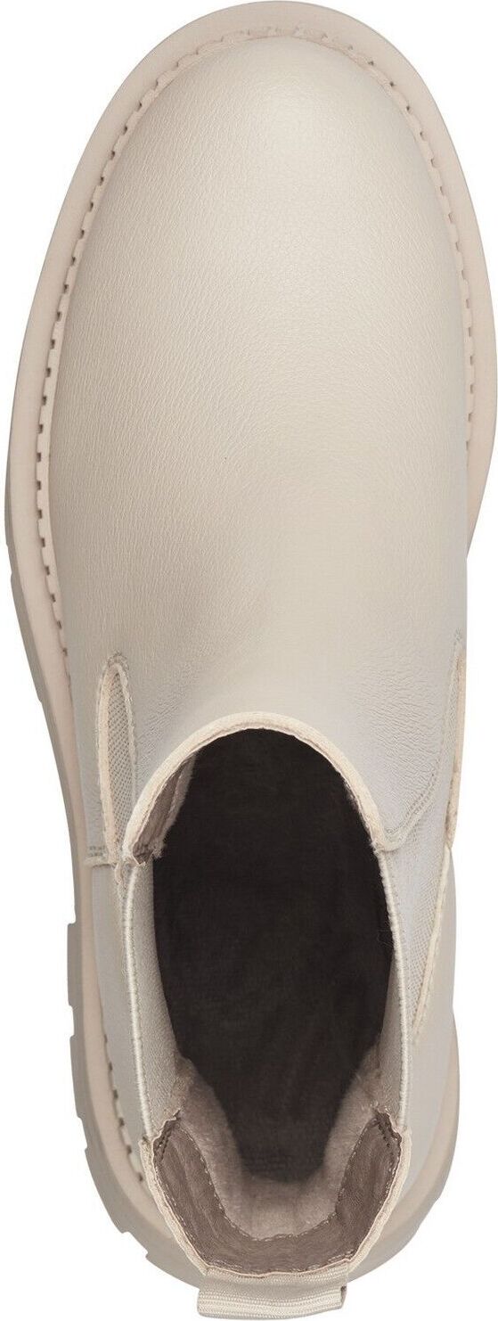 Modisch in den Herbst gehst Du mit diesem schönen Chelsea Boots für Damen von Tamaris.Gefertigt aus weichem Kunstleder in Beige, wurde der Schuh mit seitlichen Gummipanels versehen, die für einen leichten Einstieg sorgen.Das weiche Fußbett passt sich nach kurzer Zeit Ihrer Fußform an und sorgt für ein Maximum an Komfort.Das Innenfutter aus recyceltem Material ist leicht angeraut, sehr weich und sorgt für warme Füße auch an kühlen Tagen.Der markante Blockabsatz mit Plateau fällt garantiert auf und sorgt für einen festen Stand.Lass Dich begeistern, dieser Schuh darf im Schuhschrank auf keinen Fall fehlen!