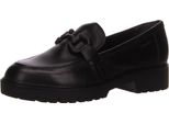 Modern interpretiert, ist dieser Damen Loafer von Tamaris.Gefertigt aus weichem Echtleder in Schwarz, ist er auf dem Rist mit einer Metall Applikation verziert.Ob für das Büro oder lieber Casual zur Jeans, Rock oder Kleid, der Slipper passt perfekt zu jedem Style. +