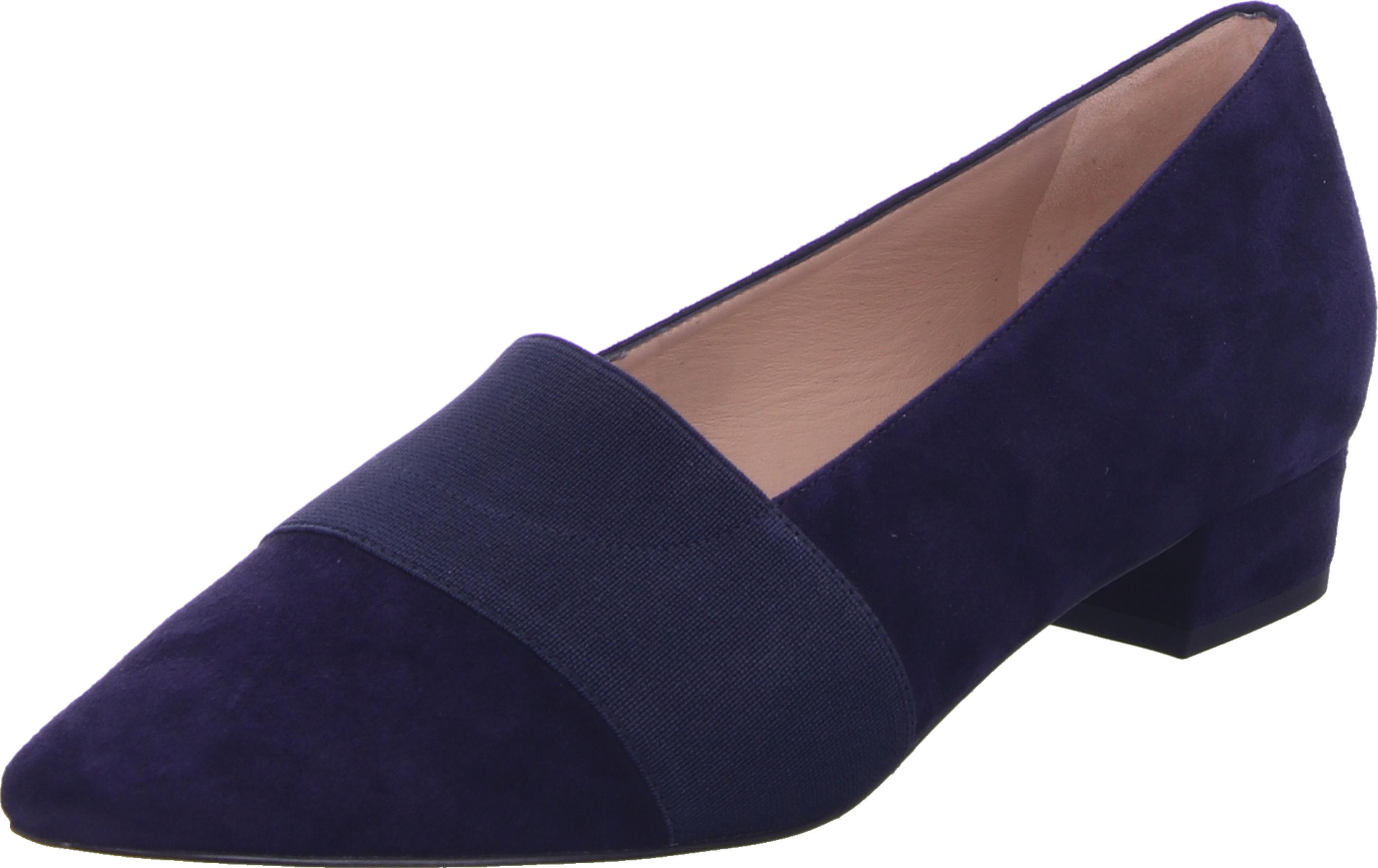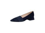 Entdecken Sie die zeitlose Eleganz der Peter Kaiser Ballerinas aus samtigem Veloursleder in edlem Blau. Das raffiniert gestaltete Design besticht durch eine filigrane Linienführung und eine spitz zulaufende Zehenpartie, die den Fuß optisch strecken und eine elegante Silhouette schaffen. +