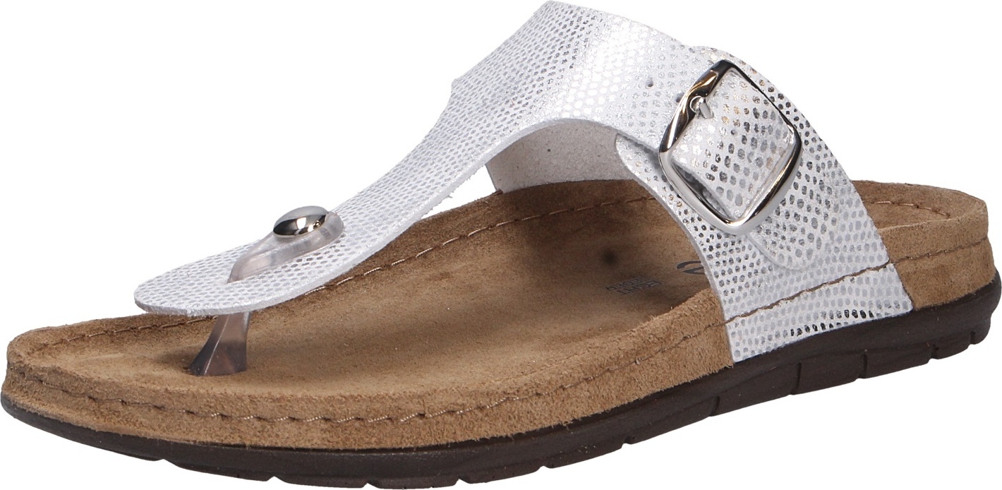 Erleben Sie pure Leichtigkeit und alltagstauglichen Komfort mit den Rohde RODIGO Zehentrenner in elegantem Silber. Gefertigt aus langlebigem Lederimitat, vereinen diese Schuhe Widerstandsfähigkeit mit moderner Fleckenunempfindlichkeit – perfekt für sonnige Tage und Abenteuer am Wasser. Die verstellbare Schnalle sorgt für einen individuellen Sitz, während das weiche, anatomisch vorgeformte Fußbett jeden Schritt zu einem angenehmen Erlebnis macht, auch nach langen Stunden auf den Beinen. +