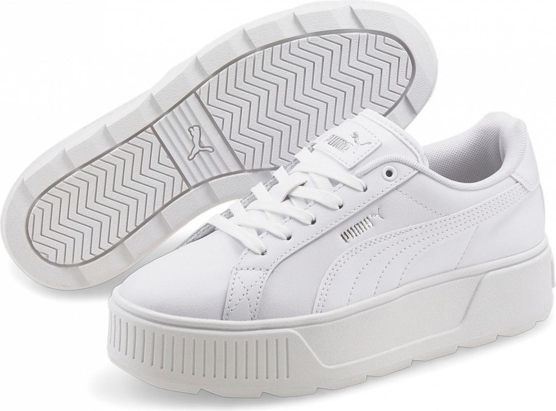 Entdecke den wilden, femininen und fröhlichen Look des PUMA "Karmen L Damen Sneakers". Diese Sneaker in weiß-silberfarben sind nicht nur ein stylischer Hingucker, sondern bieten auch höchsten Komfort. +