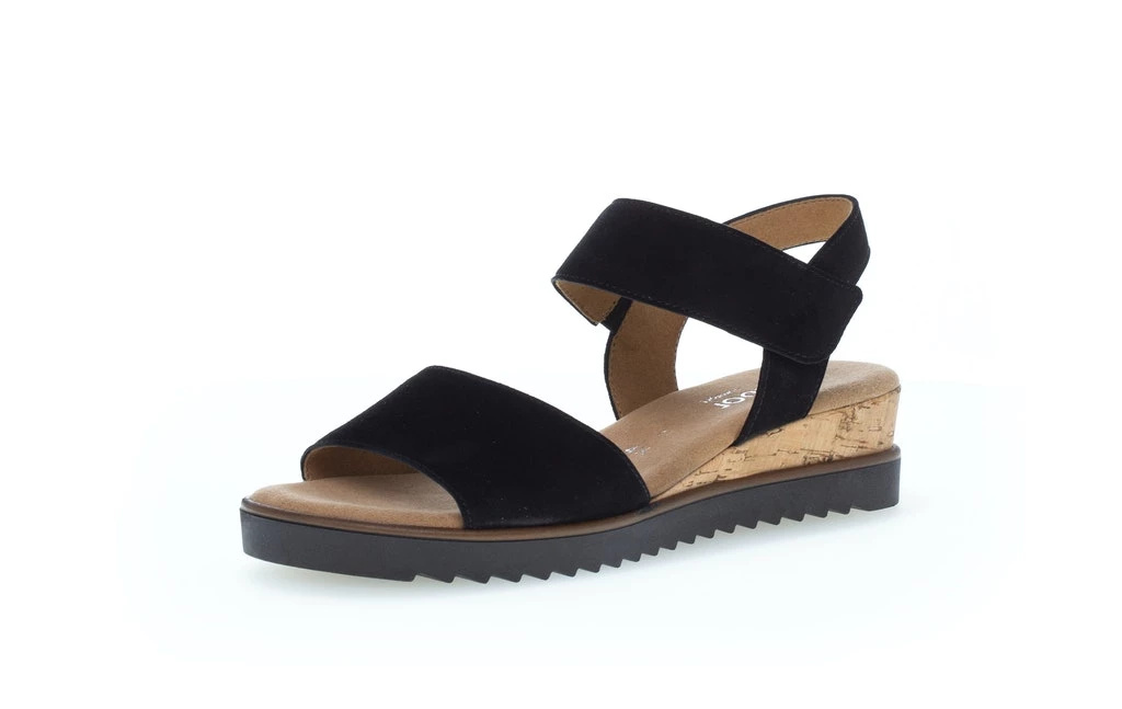 Die Gabor Sandalette mit kleinem Stretcheinsatz verbindet klassisches Design mit besonderem Komfort. Weite G sorgt für eine angenehme Passform und der kleine Stretcheinsatz ermöglicht eine individuelle Anpassung an den Fuß. Das strapazierfähige Ziegenveloursleder in samtigem Schwarz verleiht dem Schuh eine edle Note, während das Innenmaterial aus weichem Textil für ein angenehmes Tragegefühl sorgt. +