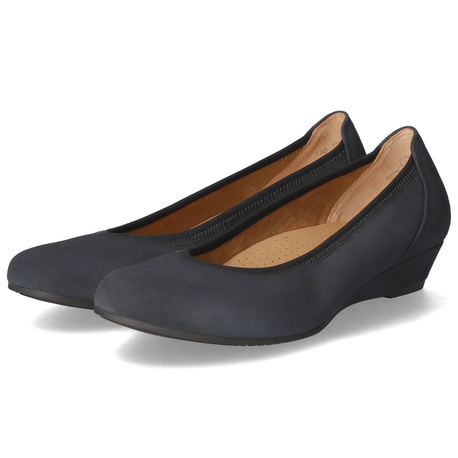 Die Gabor KRETA Pumps in einem eleganten Blauton sind die perfekte Ergänzung für jedes Businessoutfit. Der Keilabsatz sorgt für einen bequemen und sicheren Gang, während die gepolsterte Lederdecksohle für höchsten Tragekomfort sorgt. Der Schlupfschuh mit Gummizugeinfassung ermöglicht ein einfaches An- und Ausziehen, während das Obermaterial aus hochwertigem Ziegenveloursleder dem Schuh einen klassischen Look verleiht. +