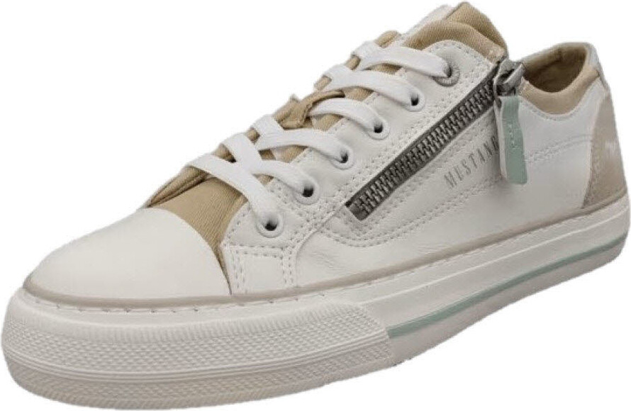 Entdecke den perfekten Begleiter für deine Casual- und Business-Looks: die Mustang Shoes Sneaker in elegantem Beige. Diese trendigen Schuhe enden direkt unter den Knöcheln und sind somit nicht nur super bequem, sondern auch vielseitig kombinierbar. Das pflegeleichte Obermaterial aus hochwertigem Lederimitat und Textil macht die Sneakers besonders widerstandsfähig und fleckenunempfindlich – ideal für den Alltag. +