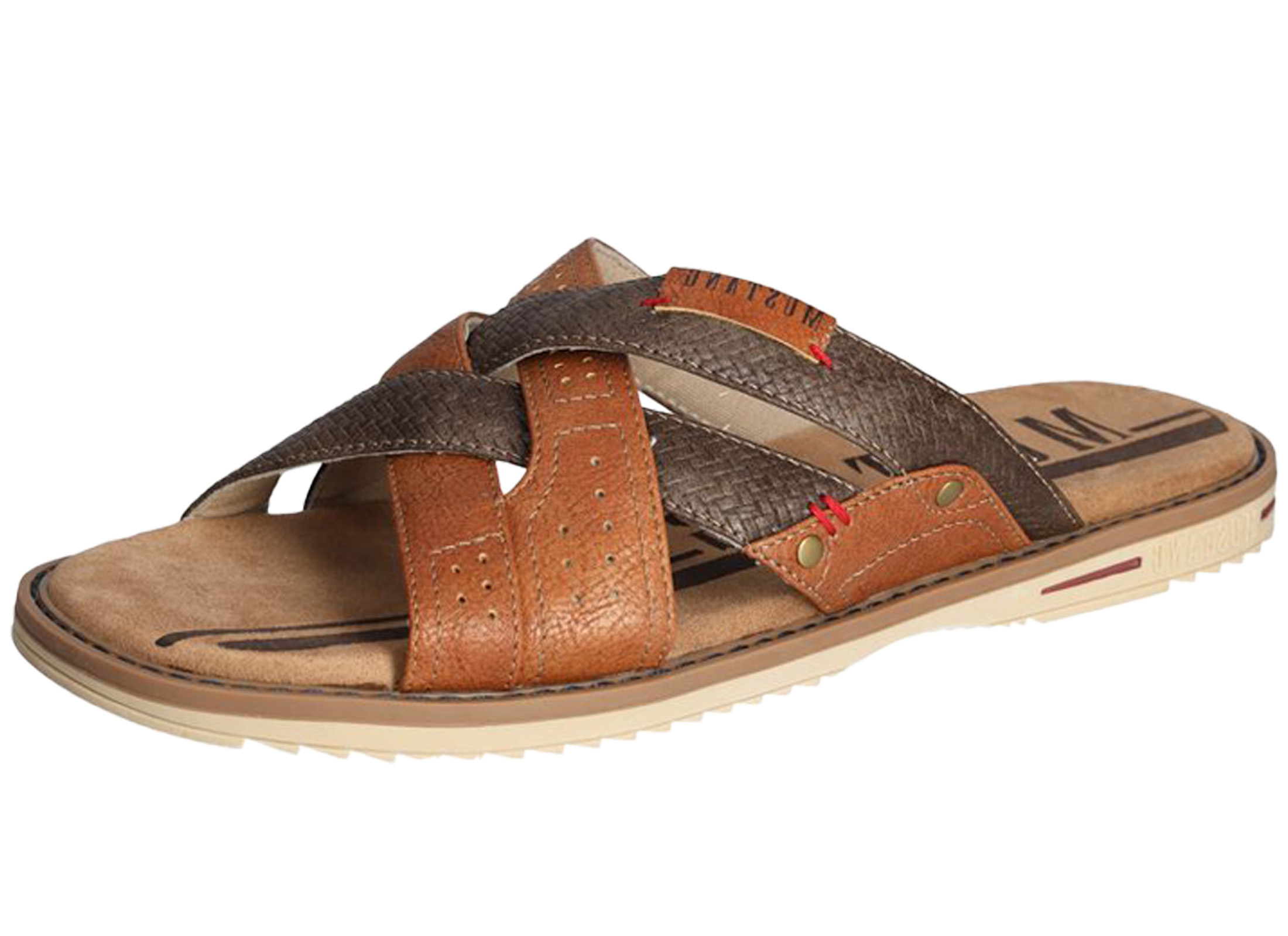 Entdecken Sie die perfekte Kombination aus Style und Komfort mit den Mustang Shoes Pantoletten aus Lederimitat in elegantem Braun. Diese modischen Pantolette sind der ideale Begleiter für heiße Tage und sorgen mit ihrem trendigen Lagen-Look und den gekreuzten Riemen im coolen Materialmix für einen unverwechselbaren Look. +