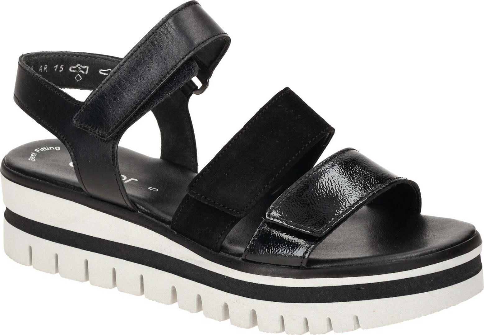 Entdecken Sie die Gabor 44.620.27 Sandalette – die perfekte Fusion aus stilvollem Design und hohem Tragekomfort. Diese elegante Damen-Sandalette in klassischem Schwarz ist der ideale Begleiter für sommerliche Anlässe oder entspannte Stadtbummel. +