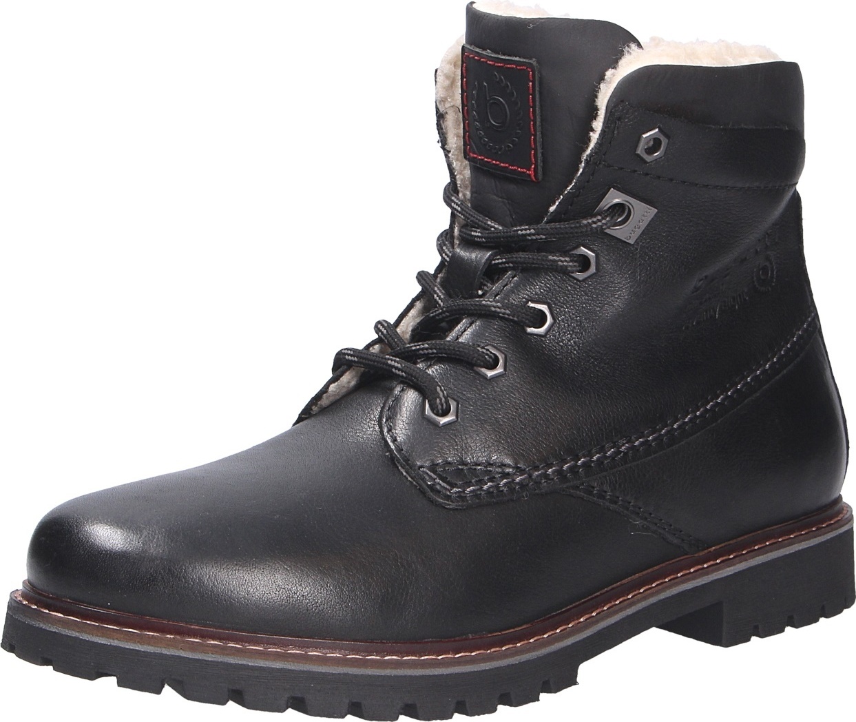 Schick und warm ist die gefütterte schwarze Schnürstiefelette von Bugatti für Herren. +