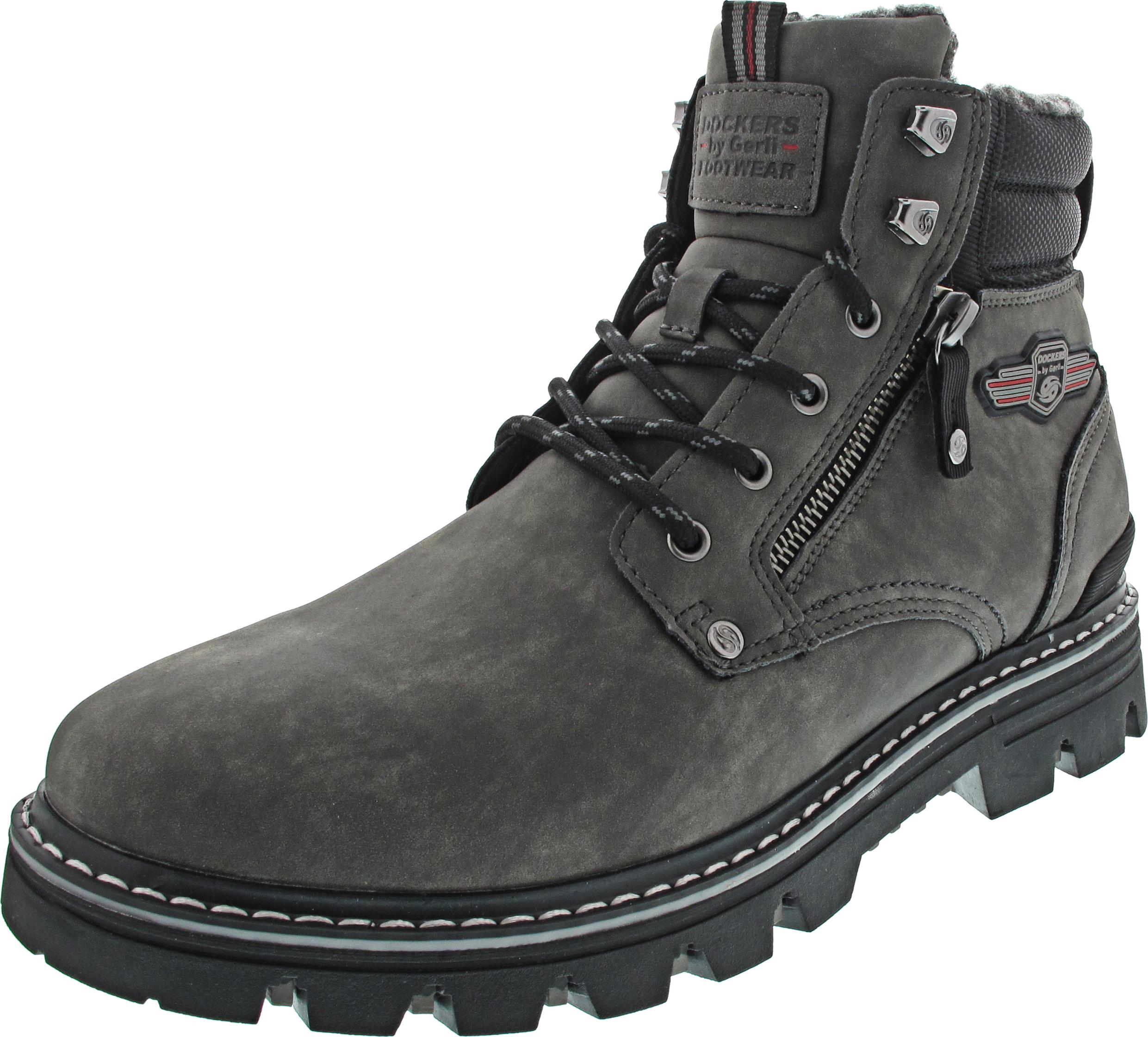 Entdecke die perfekten Begleiter für kalte Wintertage: die Dockers by Gerli Workerboots aus widerstandsfähigem Grau-Lederimitat. Diese stilvollen Schnürstiefel vereinen robustes Design mit funktionaler Wärmeisolation, sodass deine Füße auch bei frostigen Temperaturen angenehm warm bleiben. Das langlebige Obermaterial ist nicht nur reißfest, sondern verleiht den Boots eine cleane, moderne Optik. +