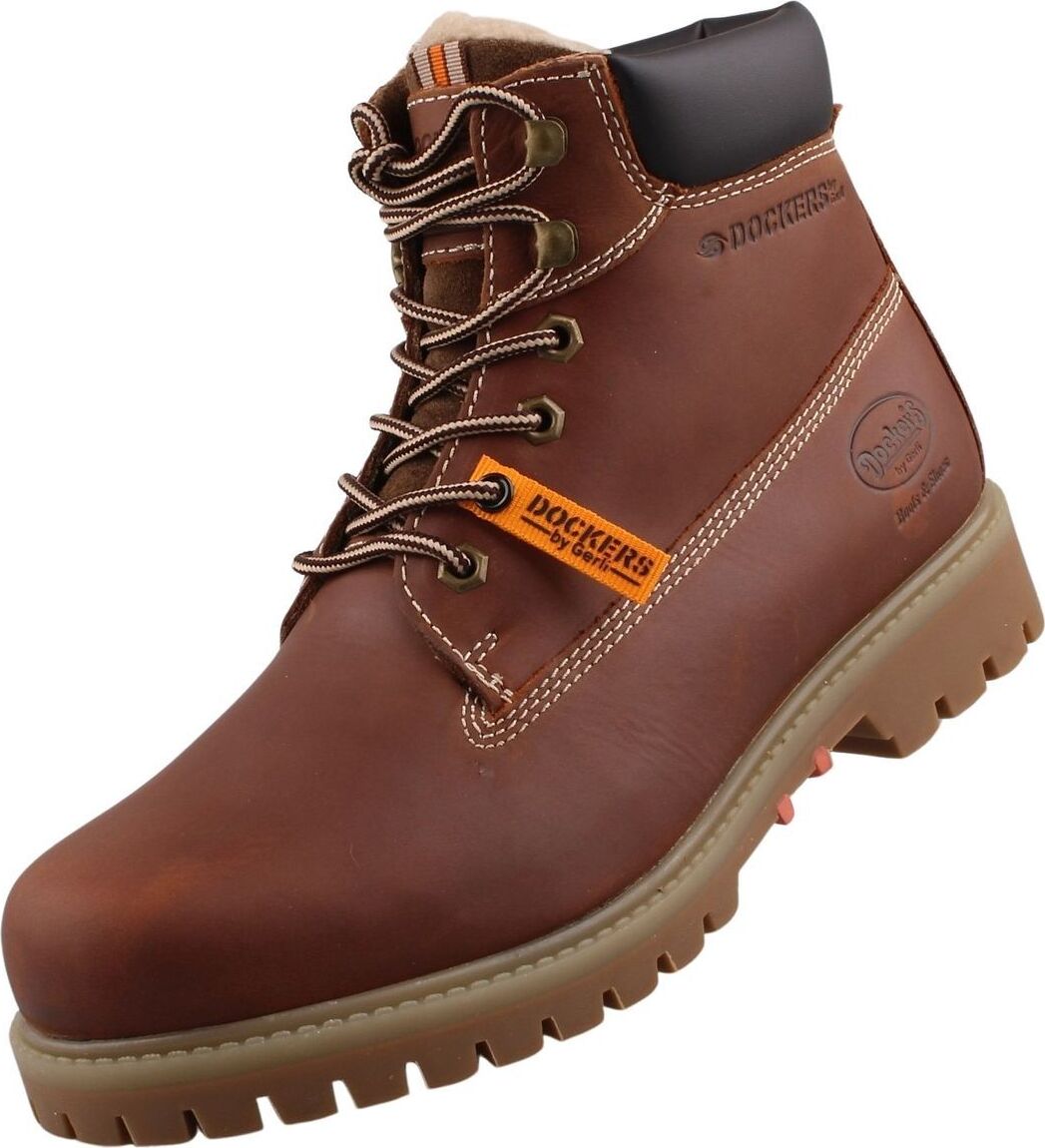Mit der Dockers by Gerli Stiefelette in einem hinreißenden Cognac-Farbton haben Sie den perfekten Begleiter für jeden Anlass gefunden. Die Kombination aus Textil und Schnürstiefelette verleiht diesem Schuh einen einzigartigen Charakter, der sowohl robust als auch bequem ist. +
