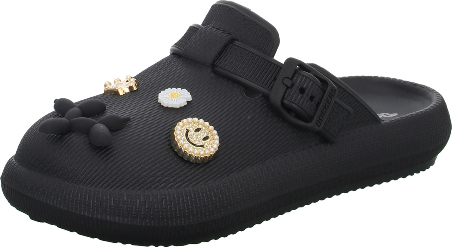 Entdecke den perfekten Begleiter für warme Tage: die Dockers by Gerli Clog in elegantem Schwarz. Diese Badeschuhe vereinen stilvolles Design mit funktionaler Qualität – ideal für entspannte Sommerspaziergänge oder den Strandbesuch. +