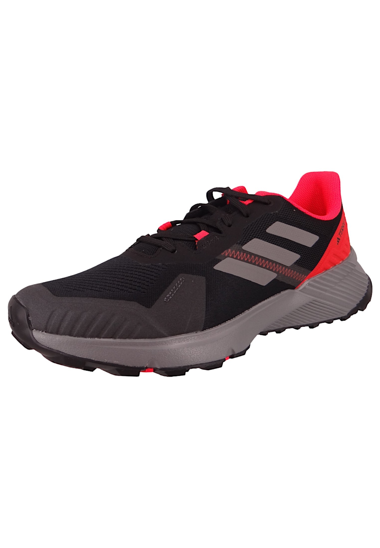 Erlebe mit dem adidas TERREX Soulstride Trailrunning-Schuh ultimatives Trailrunning-Vergnügen! Das cleane Design in Core Black, Grey Four und Solar Red macht nicht nur optisch einiges her, sondern überzeugt auch mit Funktionalität. Dank des speziellen Hybrid-Profils meisterst du spielend den Wechsel zwischen Asphalt und Gelände. Die hervorragende Dämpfung und die leichte EVA-Zwischensohle sorgen für langanhaltenden Komfort, egal wie anspruchsvoll dein Trail ist. +