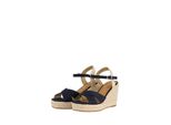 Die Sandalette ist in der trendigen Farbkombination navy-beige erhältlich und verfügt über ein Obermaterial aus Textil sowie ein Innenfutter aus Synthetik.