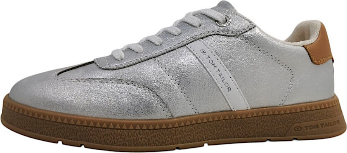 Entdecke die perfekten Begleiter für Freizeit und Business: Die TOM TAILOR Sneaker in edlem Silberfarben vereinen stilvolles Design mit höchstem Komfort. Das elegante Low-Top-Design reicht bis unterhalb des Knöchels und sorgt für einen lässigen, modernen Look, der sich mühelos in deinen Alltag integriert. Das widerstandsfähige Lederimitat-Obermaterial macht die Schuhe besonders langlebig und pflegeleicht, während die profiliert Synthetik-Sohle für einen sicheren, rutschfesten Halt sorgt. +
