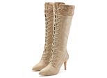 Entdecke die LASCANA Stiefelette in einem eleganten Beigeton – das perfekte Statement-Piece für stilbewusste Fashionistas. Diese hoch geschnittenen Stiefel vereinen klassisches Design mit modernen Akzenten und setzen dabei einen individuellen Farbtupfer. Der modische Strickeinsatz am Schaft verleiht den Schuhen eine besondere Note und macht sie zum Blickfang. +