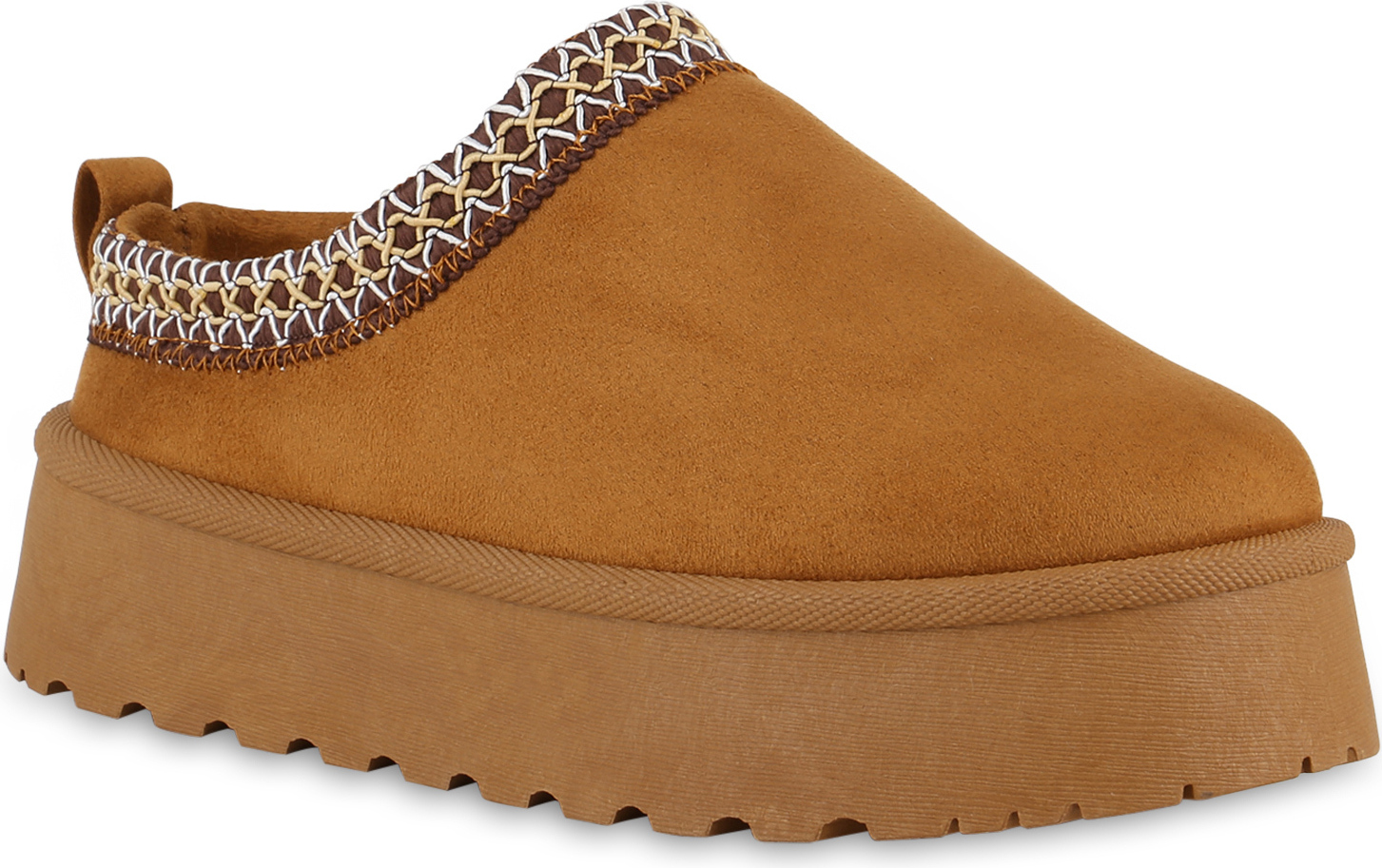 VAN HILL 840625 Hausschuh Damen Pantoffeln Hausschuhe Bequeme Prints Plateau (braun)