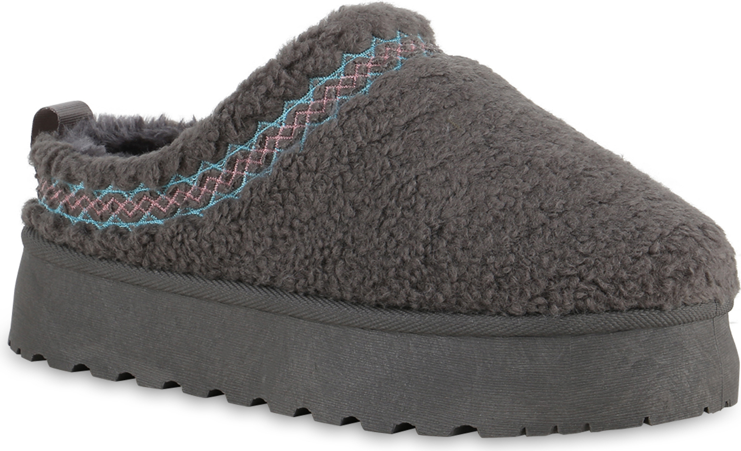 VAN HILL 840872 Hausschuh Damen Warm Gefütterte Pantoffeln Bequeme Kunstfell Teddy (grau)