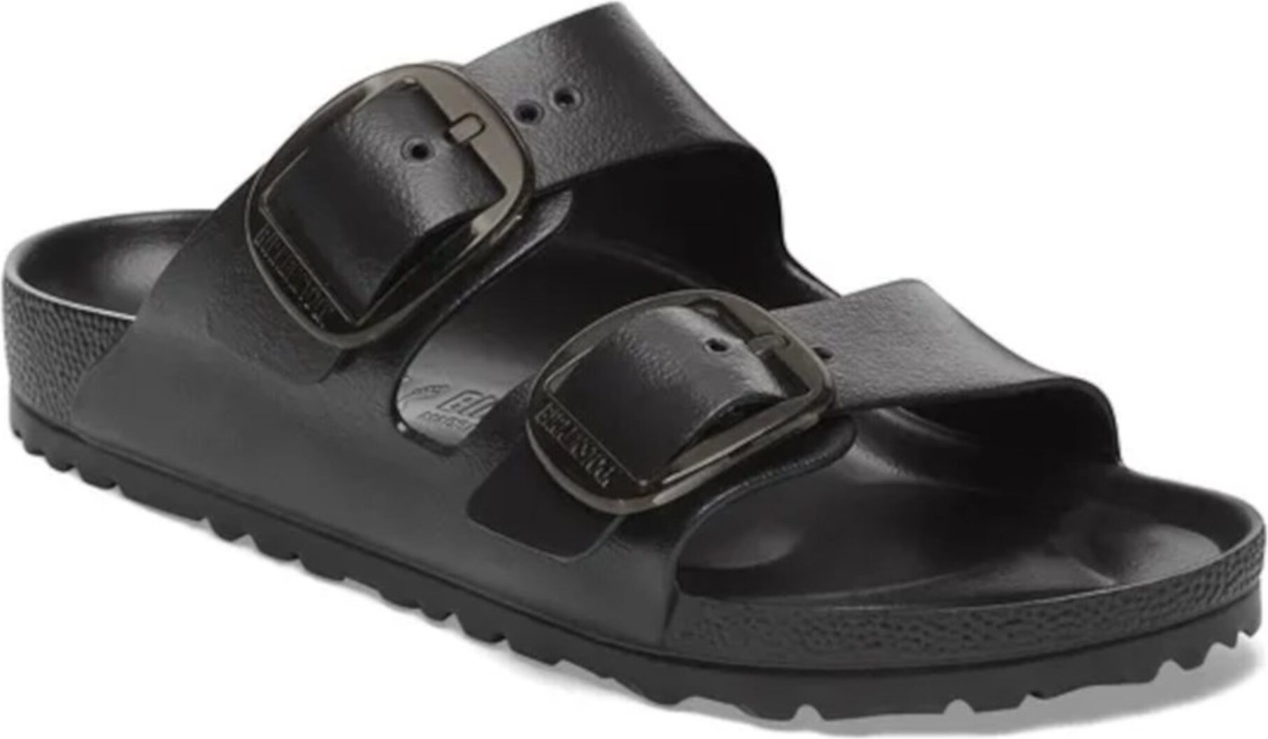 Entdecke den ultimativen Sommerschuh, der Komfort und Stil perfekt vereint: die Birkenstock ARIZONA BIG BUCKLE Pantolette in klassischem Schwarz. Diese elegante Slide besticht durch ihre offene Schuhspitze, die dir Leichtigkeit und Flexibilität schenkt – ideal für entspannte Tage unter der Sonne. Die profiliierte EVA-Sohlen sorgt für einen sicheren Halt und eine rutschfeste Traktion, sodass du auf unebenem Untergrund stets stabil bleibst. +