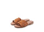 Die offen gestaltete Konstruktion lässt deine Füße frei atmen und verleiht deinem Outfit eine lässige, feminine Note. Die weich gepolsterte Innensohle garantiert ganztägigen Tragekomfort, sodass du die Sandale problemlos von morgens bis abends tragen kannst. Ob zu luftigen Sommerkleidern, femininen Röcken oder entspannten Jeans – diese stilvolle Pantolette vervollständigt jede Garderobe.