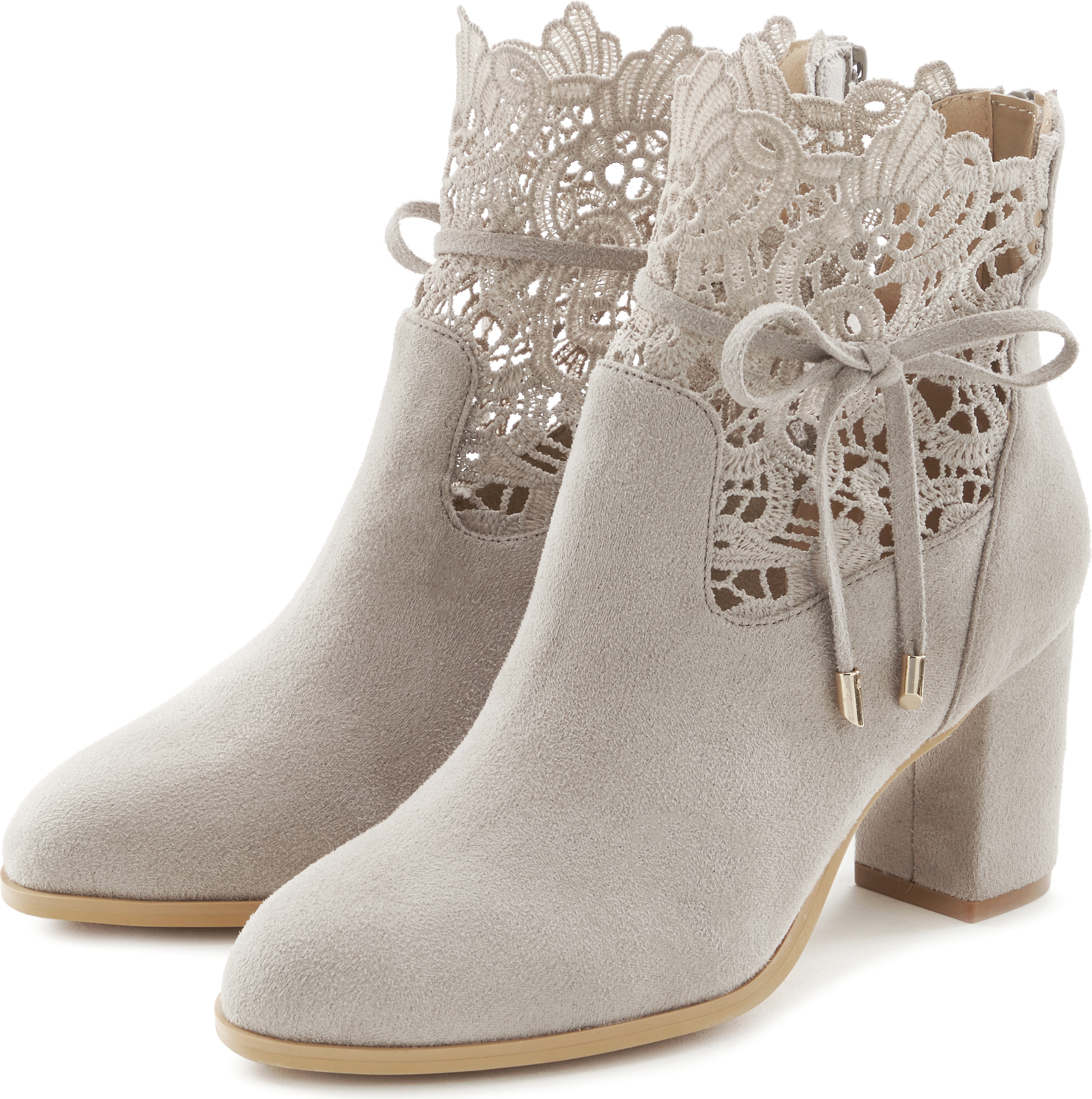 Entdecke die zeitlose Eleganz der LASCANA Trachten-Schuh, einer einzigartigen High-Heel-Stiefelette, die sowohl traditionelle als auch moderne Stile mühelos vereint. Diese graue Ankle Boot begeistert mit ihrem kunstvoll gestalteten Obermaterial aus hochwertigem Textil, das nicht nur schick aussieht, sondern auch hohen Tragekomfort bietet. Der raffinierte Spitzeneinsatz im Schaft verleiht der Stiefelette eine feminine Note und macht sie zum absoluten Hingucker – perfekt für jede Trachten-Anlass oder festliche Gelegenheit. +