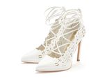 Entdecke die LASCANA Belle Affaire Stiletto Pump in strahlendem Weiß – ein Schuh, der alle Blicke auf sich zieht. Das filigrane florale Laser-Cut-Design verleiht diesen Schnürpumps eine einzigartige und elegante Note, die jeden Look aufwertet. Mit einer souveränen Absatzhöhe von 11,5 cm und einem 1 cm hohen Plateau entsteht eine anmutige Silhouette, die zugleich Stabilität und Komfort bietet – perfekt für besondere Anlässe, elegante Events oder um schlichte Outfits stilvoll zu akzentuieren. +