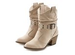 Entdecke den Geist des wilden Westens mit der einzigartigen LASCANA Cowboy Stiefelette in elegantem Beige. Diese stilvollen Cowboy Boots bringen echten Western-Charme direkt in dein Schuhregal und eröffnen dir eine Welt voller vielseitiger Stylingmöglichkeiten. Das pflegeleichte Material sorgt für angenehmen Komfort im Alltag, sodass du den ganzen Tag über bequem unterwegs bist. +