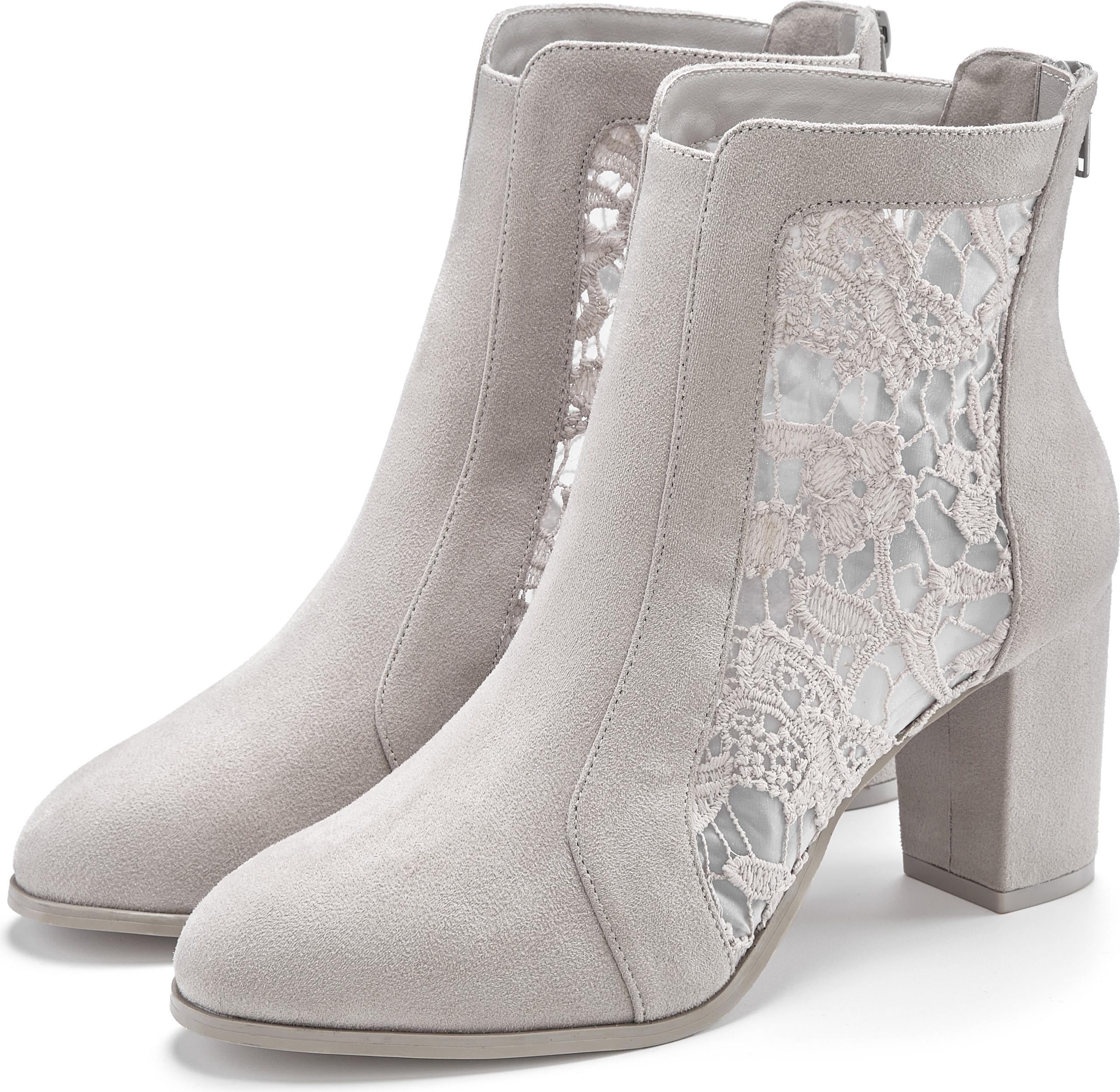Entdecke die perfekte Kombination aus Eleganz und Komfort mit der LASCANA Ankle Boot in Grau. Diese stilvollen High-Heel-Stiefelette vereinen feminine Raffinesse mit einem modernen Design, das jedes Outfit aufwertet. Das zarte Spitzenbesatz Detail verleiht dem Schuh eine dezente Note von Eleganz, während der bequeme Blockabsatz für sicheren Halt und angenehmes Tragegefühl sorgt – perfekt für lange Tage und Nächte. +