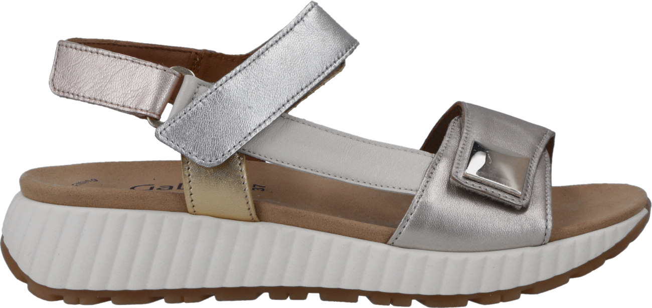 Entdecken Sie den perfekten Begleiter für den Sommer: die Gabor Nappaleder Keilsandalette in elegantem Beige. Diese leichtgewichtige Sandale verbindet hochwertigen Komfort mit einem modischen Design, das sofort für sommerliches Flair sorgt. +