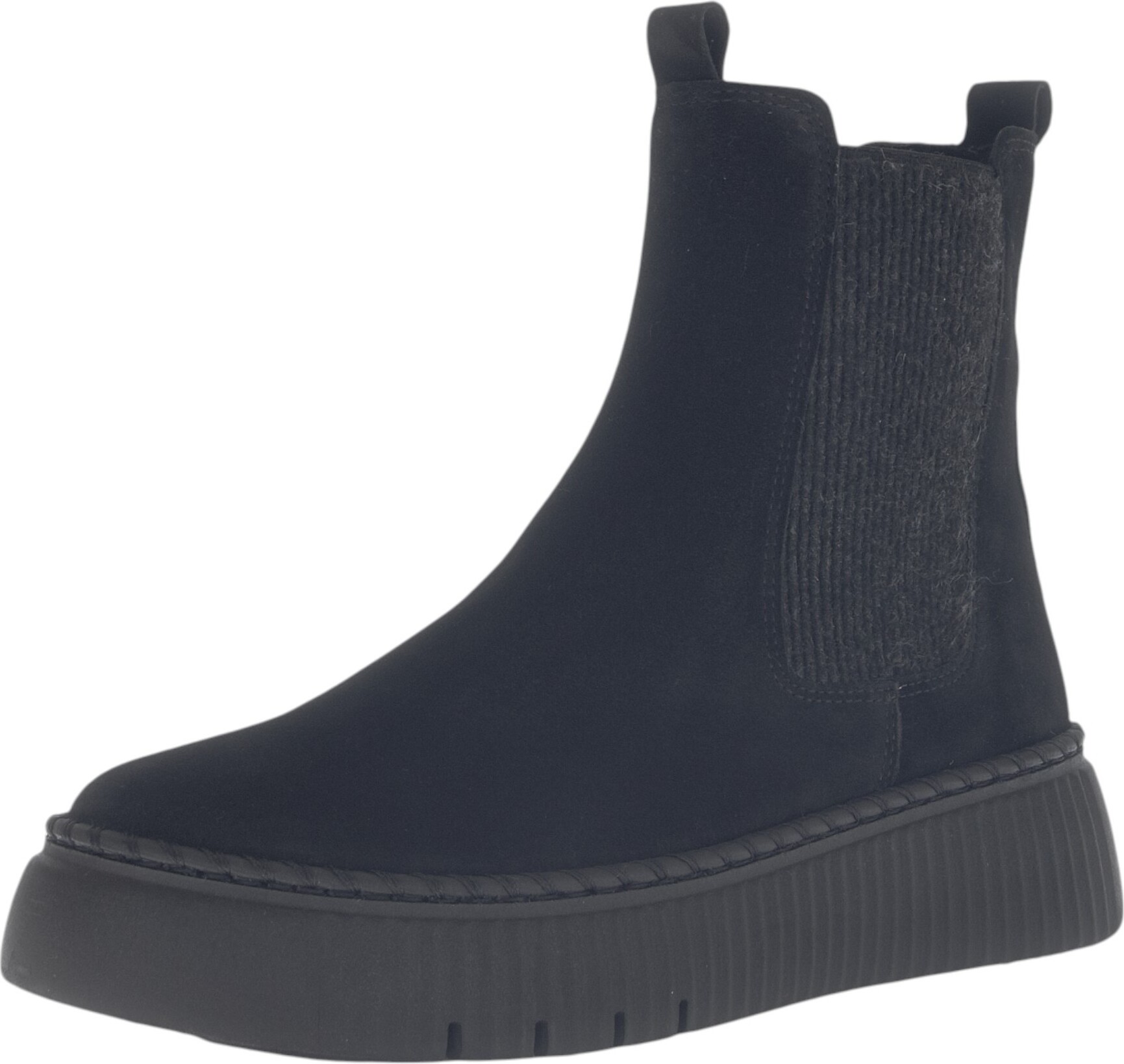 Entdecken Sie die Gabor Chelseaboots mit Plateau – die perfekte Kombination aus stilvoller Eleganz und maximalem Komfort. In klassischem Schwarz gehalten, passen diese Stiefeletten zu nahezu jedem Outfit und setzen gleichzeitig ein modisches Statement. Das Obermaterial aus samtweichem Veloursleder überzeugt nicht nur durch seine Langlebigkeit, sondern auch durch angenehme Flexibilität. +
