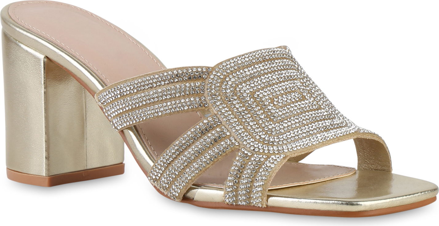 VAN HILL 841549 Sandalette Damen Pantoletten Sandaletten Klassische Strass Cut-Outs (gold)