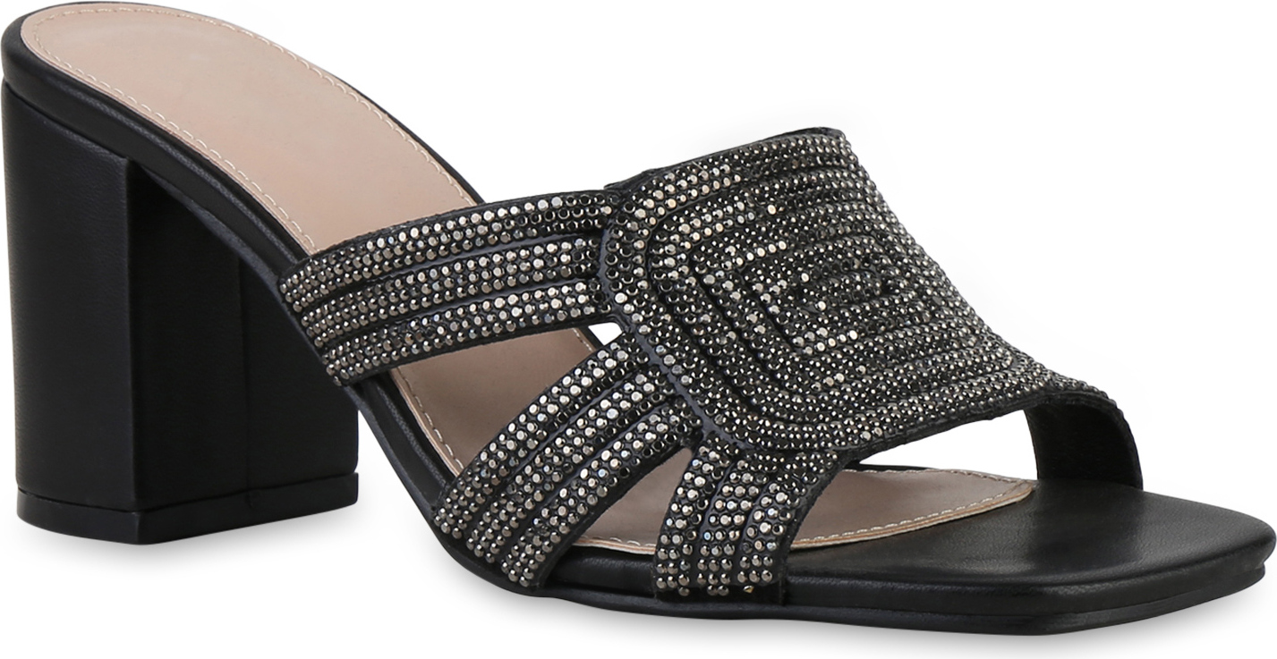 VAN HILL 841549 Sandalette Damen Pantoletten Sandaletten Klassische Strass Cut-Outs (schwarz)