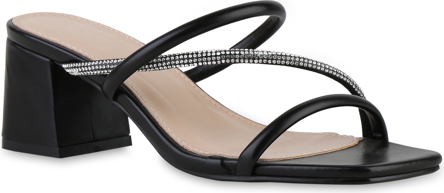 VAN HILL 841540 Sandalette Damen Pantoletten Sandaletten Strass Blockabsatz Freizeit (schwarz)