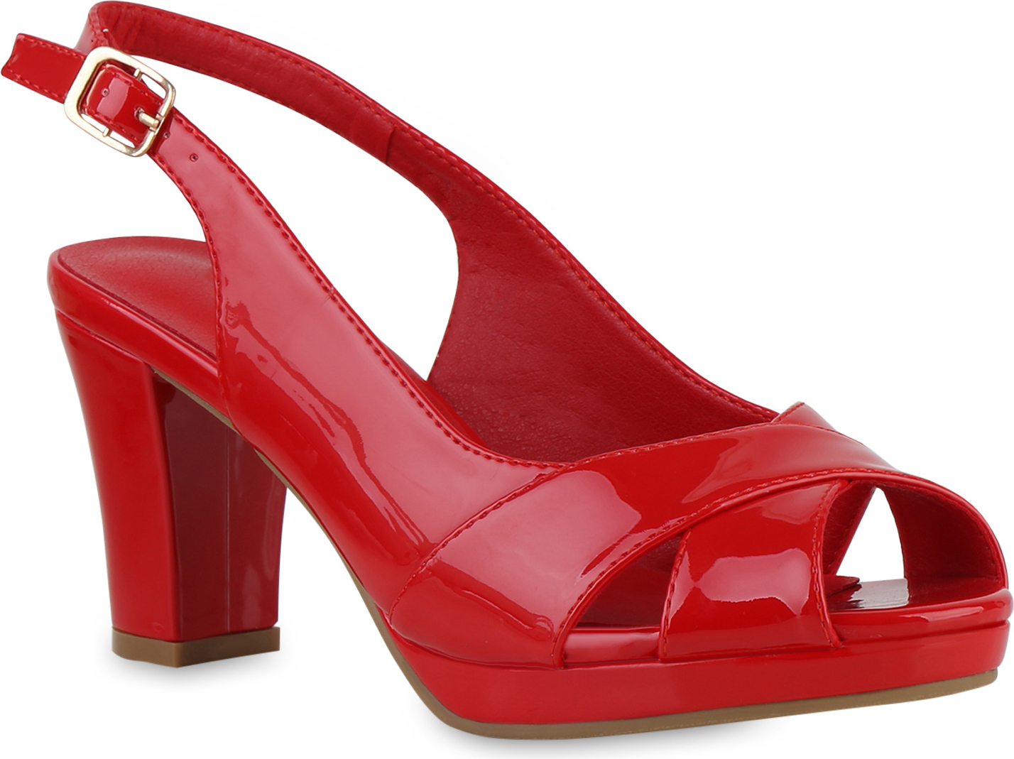 VAN HILL 841590 Sandalette Damen Klassische Sandaletten Basic Leder-Optik Freizeit (rot)
