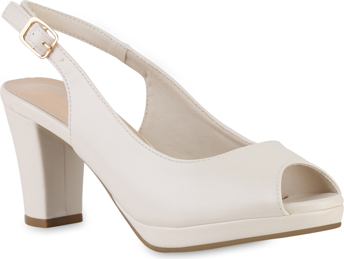 VAN HILL 841589 Sandalette Damen Klassische Sandaletten Basic Leder-Optik Freizeit (beige)