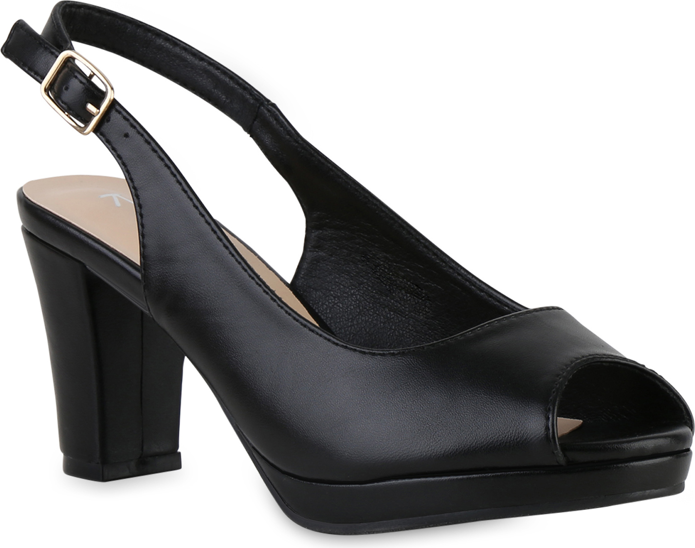 VAN HILL 841589 Sandalette Damen Klassische Sandaletten Basic Leder-Optik Freizeit (schwarz)