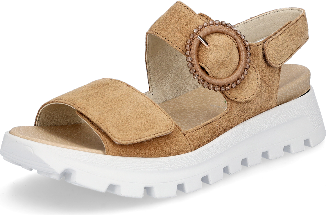 Entdecke die Waldläufer H-NELE Plateausandale – Deinen perfekten Begleiter für einen stilvollen und komfortablen Sommerauftritt. Hergestellt aus hochwertigem, langlebigem Veloursleder in einem natürlichen Braunton vereinen diese Sandalen zeitlose Eleganz mit Funktionalität. Das weiche Obermaterial schmiegt sich angenehm an den Fuß und sorgt für ein angenehmes Tragegefühl, während die profilierte Synthetik-Sohle für zusätzliche Sicherheit auf unebenem Untergrund sorgt. +