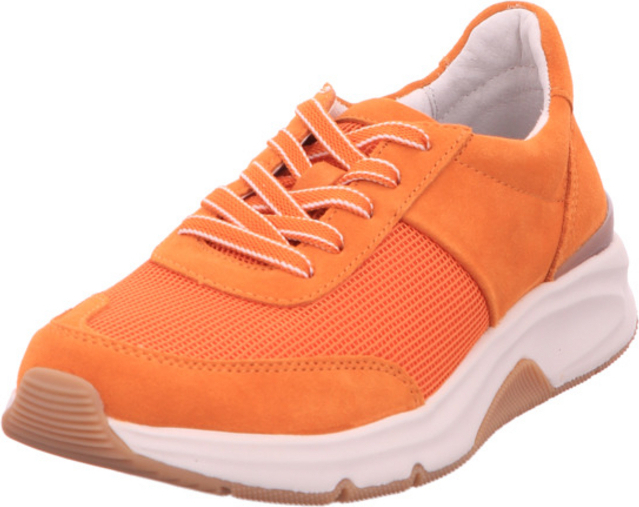 Mit dem Gabor Rollingsoft Keilsneaker in knalligem Orange bist du nicht nur stylisch unterwegs, sondern auch äußerst komfortabel. Das Obermaterial aus Textil und Veloursleder in Mesh-Optik verleiht dem Schuh eine sportliche Note. Der Schuh ist mit einem OPTIFIT-Wechselfußbett ausgestattet, das für eine angenehme Dämpfung sorgt. +