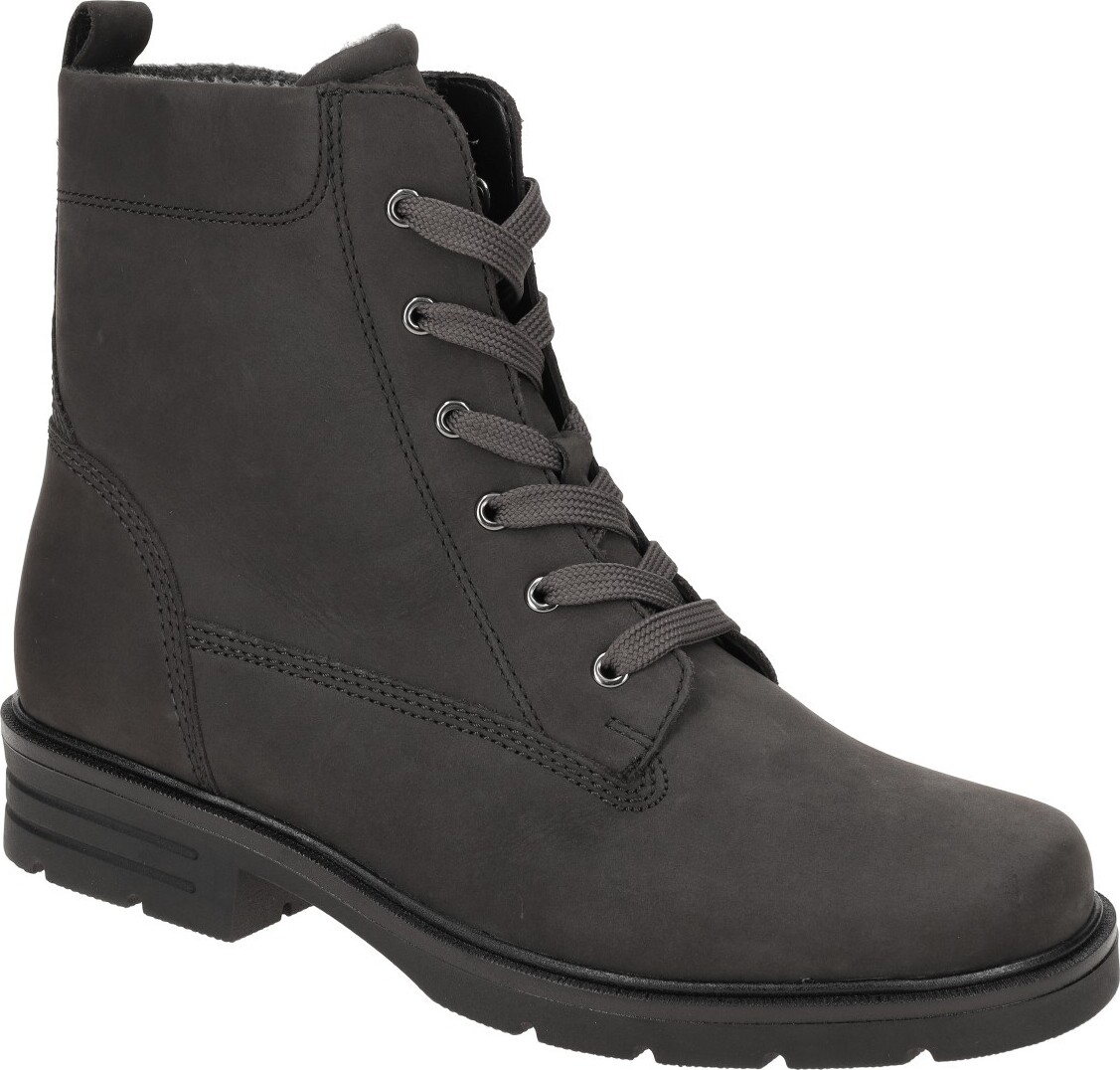 Erleben Sie zeitlose Eleganz und vielseitigen Komfort mit der Gabor Nubukleder-Schnürstiefelette in stilvollem Grau. Diese hochwertige Stiefelette vereint modernes Design mit praktischen Details: Das fein strukturierte Nubukleder verleiht jedem Look einen Hauch von Luxus, während die robuste Profilsohle sicheren Halt auf unterschiedlichsten Untergründen bietet. Der praktische Reißverschluss sorgt für ein müheloses An- und Ausziehen, ergänzt durch die individuell anpassbare Schnürung, die für optimalen Sitz und sicheren Halt sorgt. +