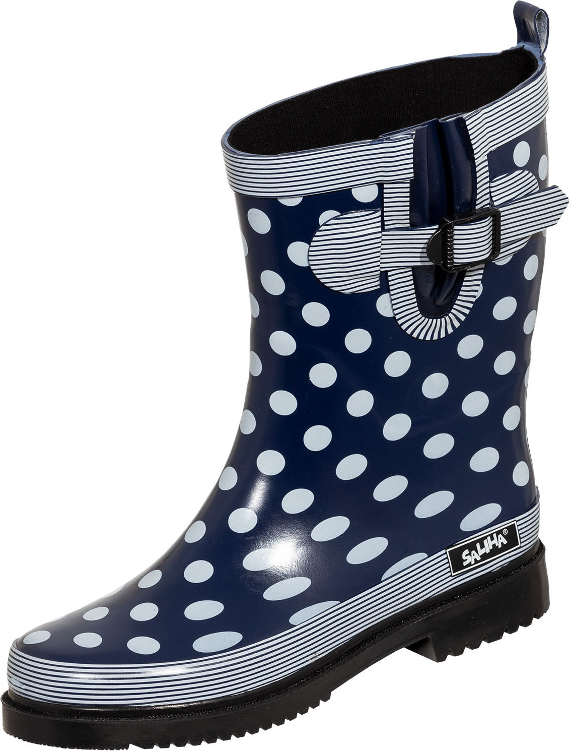 Bereiten Sie sich auf regnerische Tage vor und machen Sie jeden Schritt zum modischen Statement mit den SALIHA Damen Regenstiefeln Dorin-K in einem strahlenden Blau! Diese Gummistiefel sind der perfekte Begleiter, um auch bei schlechtem Wetter stilvoll und bequem unterwegs zu sein. +