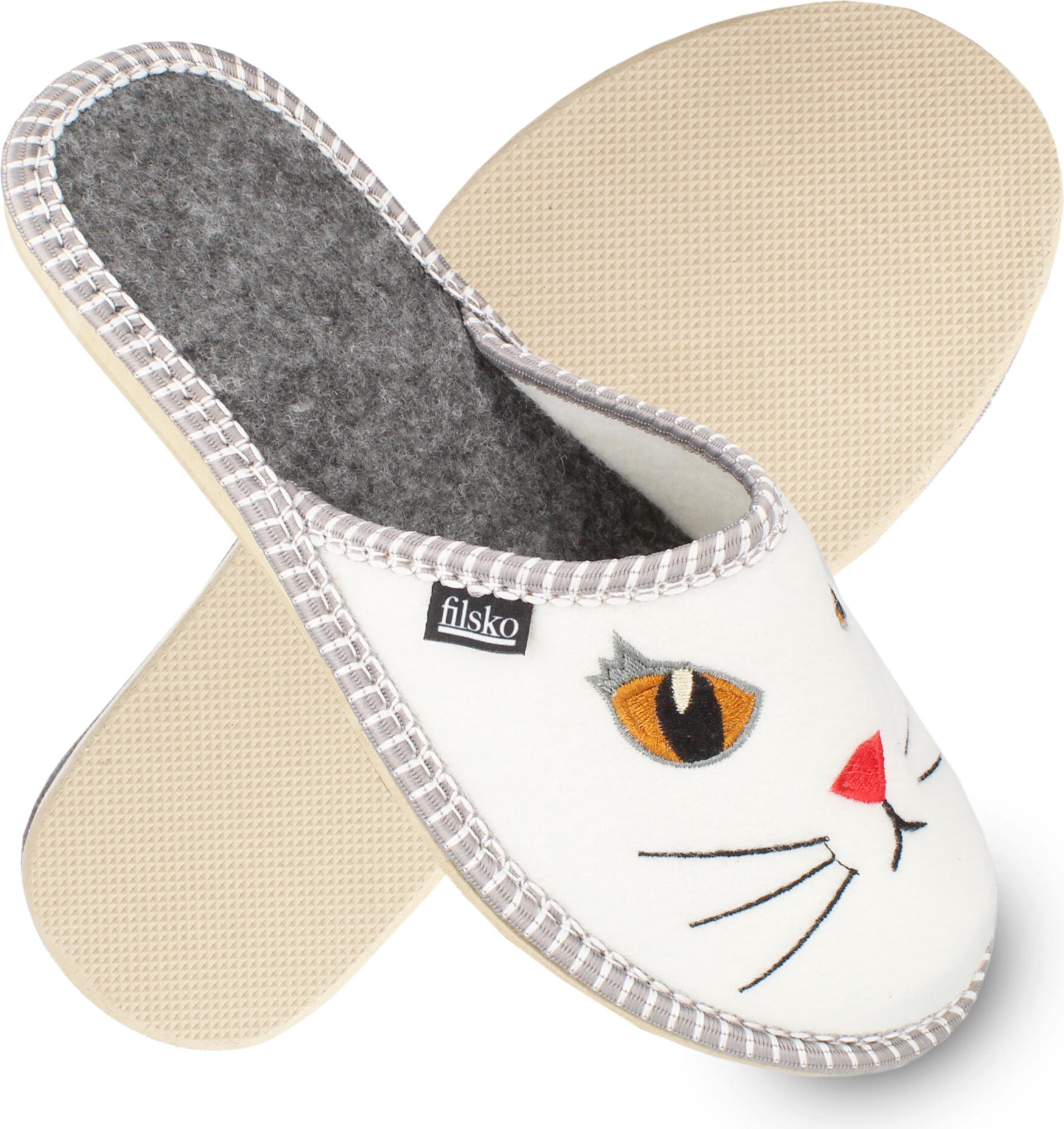 Diese bezaubernden Filzhausschuhe in Weiß bringen Stil und Gemütlichkeit in Ihr Zuhause! Mit ihren liebevoll gestickten Katzenaugen zaubern sie nicht nur ein Lächeln ins Gesicht, sondern auch wohlig warme Füße. +