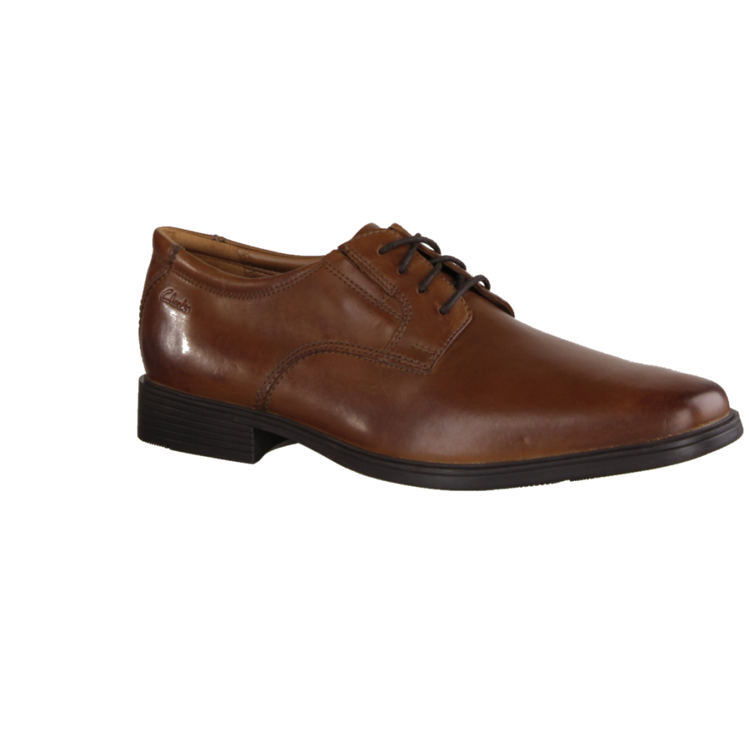 Mit dem Clarks »Tilden Plain Herren« Schnürschuh in Braun holst du dir ein absolutes Allroundtalent in deinen Schuhschrank. Der elegante Schuh ist optimal für den Business-Look oder auch ein schickes Dinner am Abend geeignet. Das braune Leder macht den Schuh besonders strapazierfähig und robust, während die Schnürung für eine individuell anpassbare Passform sorgt. +