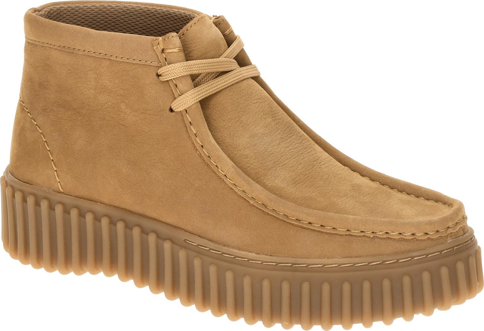 Entdecken Sie die perfekte Kombination aus stilvollem Streetstyle und höchsten Tragekomfort mit der Clarks Nubukleder Plateau-Stiefelette in elegantem Beige. Das hochwertige, weiche Obermaterial umhüllt Ihre Füße angenehm und sorgt für ein natürliches Tragegefühl, während die markant profilierte Plateau-Sohle nicht nur für einen modernen Look sorgt, sondern auch optimalen Halt auf verschiedenen Untergründen bietet. Das harmonisch gestaltete Design wird durch eine dezente Nahtführung und eine klassische Schnürung ergänzt, die das Modell zeitlos und vielseitig interpretierbar machen. +
