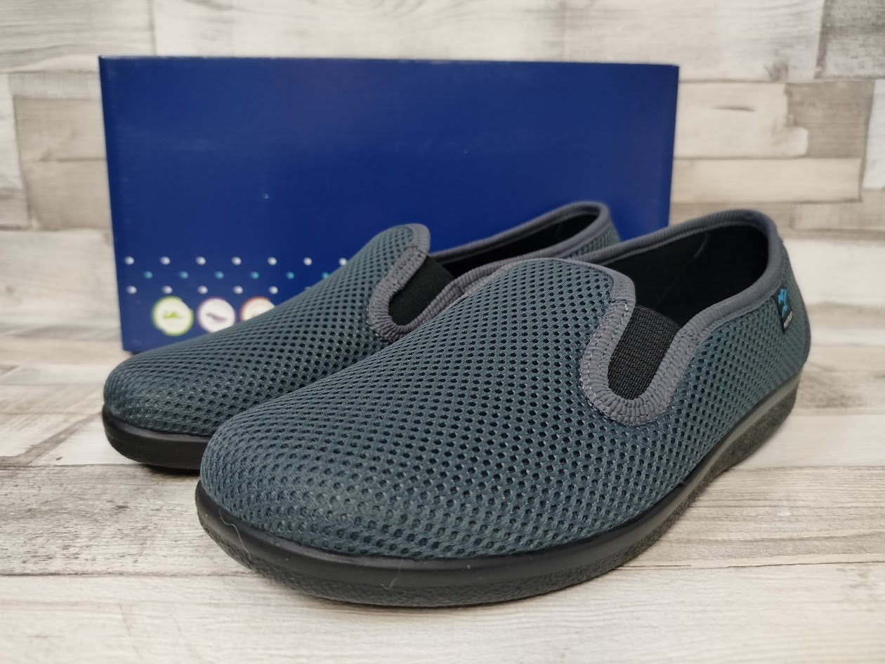 Entdecken Sie den ultimativen Komfort mit den Fly Flot Hausschuhen aus grauem Mesh. Diese Schlupfschuhe bieten einen perfekten Sitz und sind dank ihrer normalen Schuhweite für die meisten Fußtypen geeignet. +
