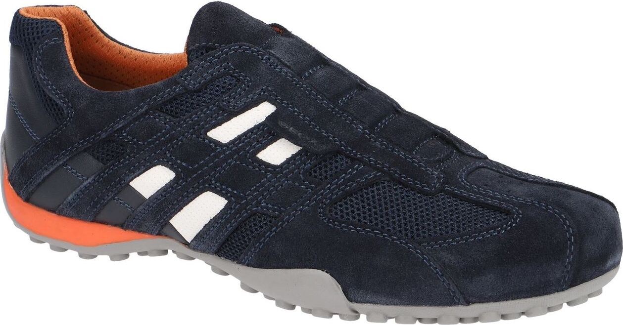 Hol dir den bequemsten und atmungsaktivsten Schuh mit dem Geox »Uomo Snake Slip-On-Sneaker« Schnürschuh in edlem Blau! Dieser Low-Sneaker ist ein wahrer Alleskönner und passt sich perfekt an deine Füße an, dank der tollen Stretch-Einsätze, die den Einstieg erleichtern. Der Schuh der atmet - seine Gummisohle ist perforiert und mit einer Spezialmembrane ausgestattet, die Mikroporen hat und somit eine natürliche Transpiration ermöglicht. So bleibt dein Fuß stets angenehm trocken und du kannst den ganzen Tag lang auf ihnen laufen ohne dabei müde Füße zu bekommen. +