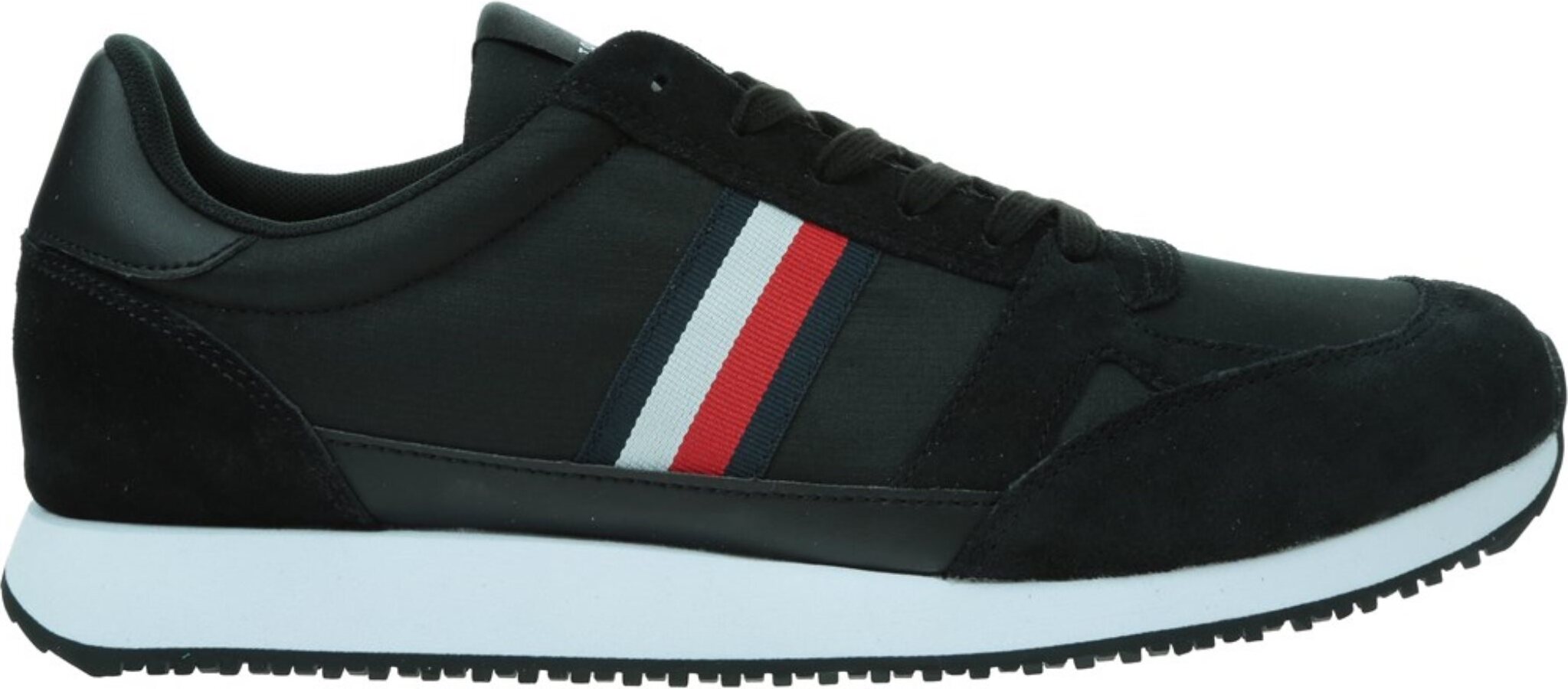 Tauchen Sie ein in den sportlichen Look mit den Tommy Hilfiger RUNNER LO VINTAGE MIX Sneakern in Schwarz! Diese stylishen Freizeitschuhe punkten mit ihrem coolen Design und bringen eine Extraportion Style in Ihre Outfits. +