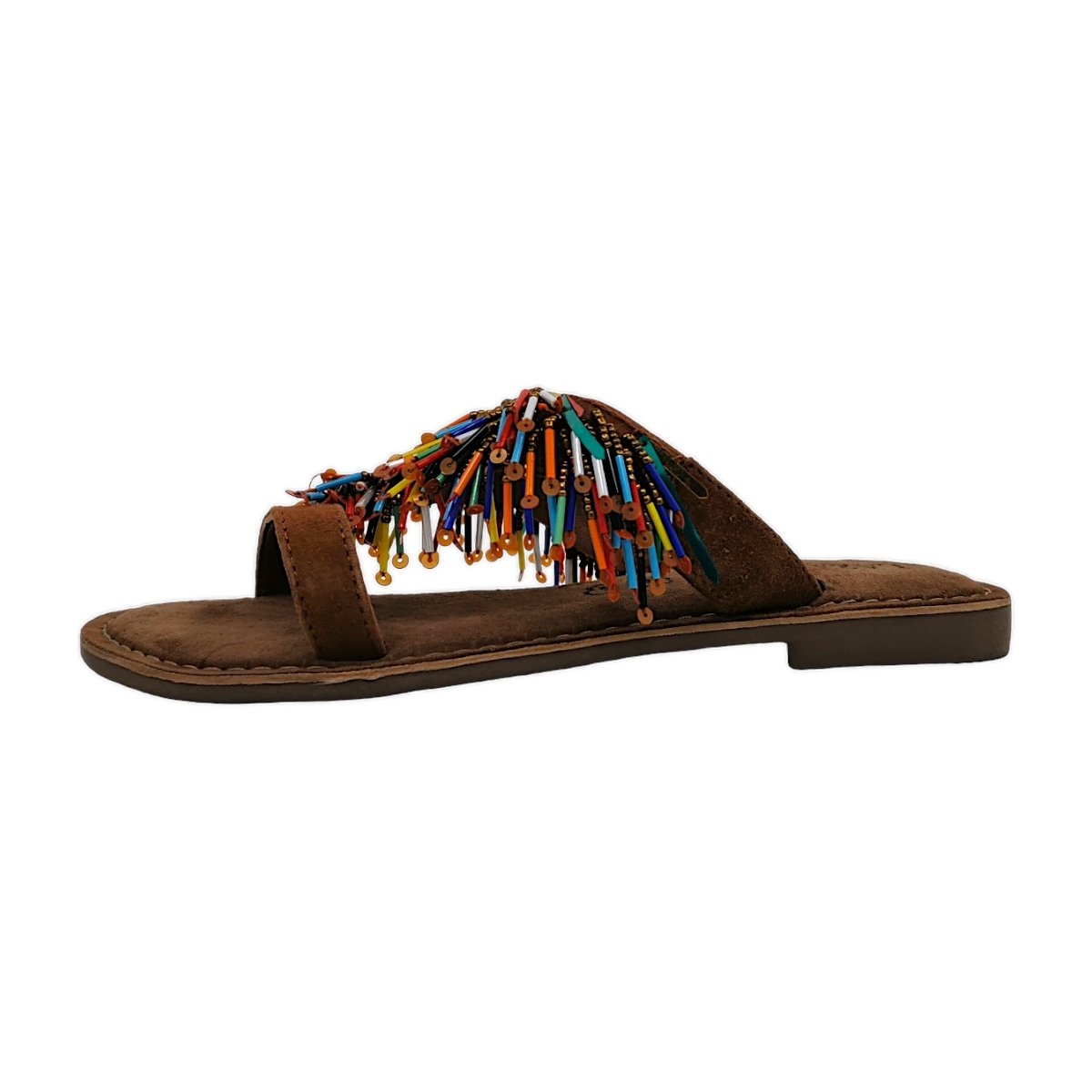 Die gepolsterte Decksohle setzt zusätzliche Akzente für ein angenehmes Laufgefühl den ganzen Tag über. Das besondere Highlight ist das auffällige Perlendekor im Fransenlook, das jedem Outfit eine verspielte und trendige Note verleiht. Robust, bequem und stilvoll – mit den Lazamani Pantoletten setzen Sie modische Akzente und profitieren gleichzeitig von ihrer hohen Alltagstauglichkeit.