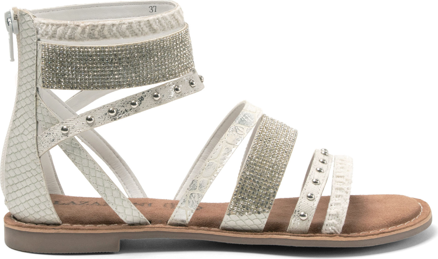 Entdecken Sie die Lazamani Schaftsandalette in strahlendem Weiß – der perfekte Begleiter für einen unvergesslichen Sommerflug. Diese elegante Leder- und Textil-Sandalette vereint stilvolles Design mit hochwertiger Verarbeitung, die Ihre Füße ins rechte Licht rückt. Das sorgfältig ausgewählte Obermaterial aus Leder sorgt für ein angenehmes Tragegefühl und eine erstklassige Passform. +