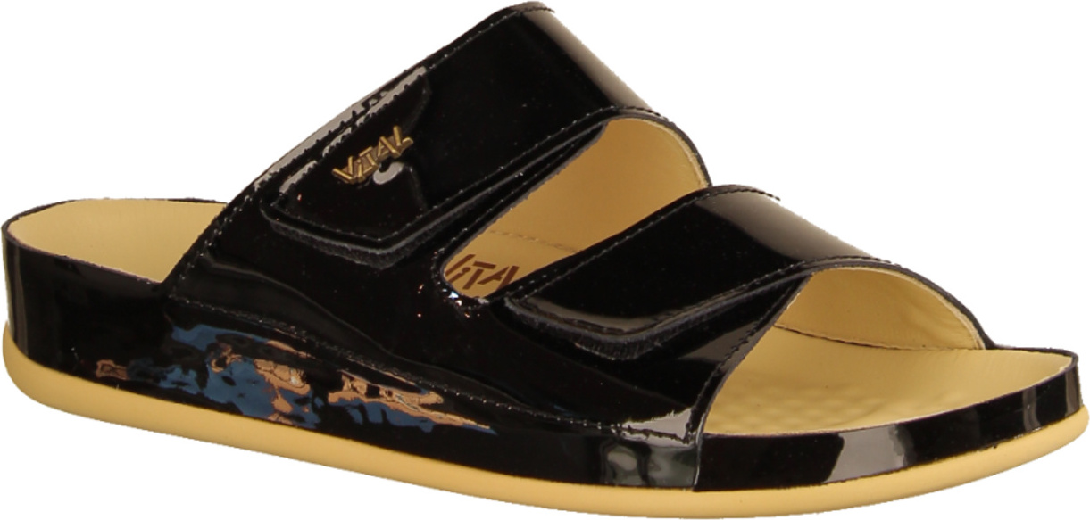 Entdecken Sie den Komfort und Stil der Vital Vital Pantoletten – die perfekte Wahl für müheloses Bequemsein an warmen Tage. Diese elegante Pantolette besticht durch ihr hochwertiges Obermaterial in schickem Lackleder, das jedem Outfit einen modernen Akzent verleiht. Das edle Design wird durch das vollständig aus Leder gefertigte Innenmaterial und die komfortable Decksohle ergänzt, die sich sanft an Ihre Füße anschmiegt und für ein angenehmes Fußklima sorgt. +
